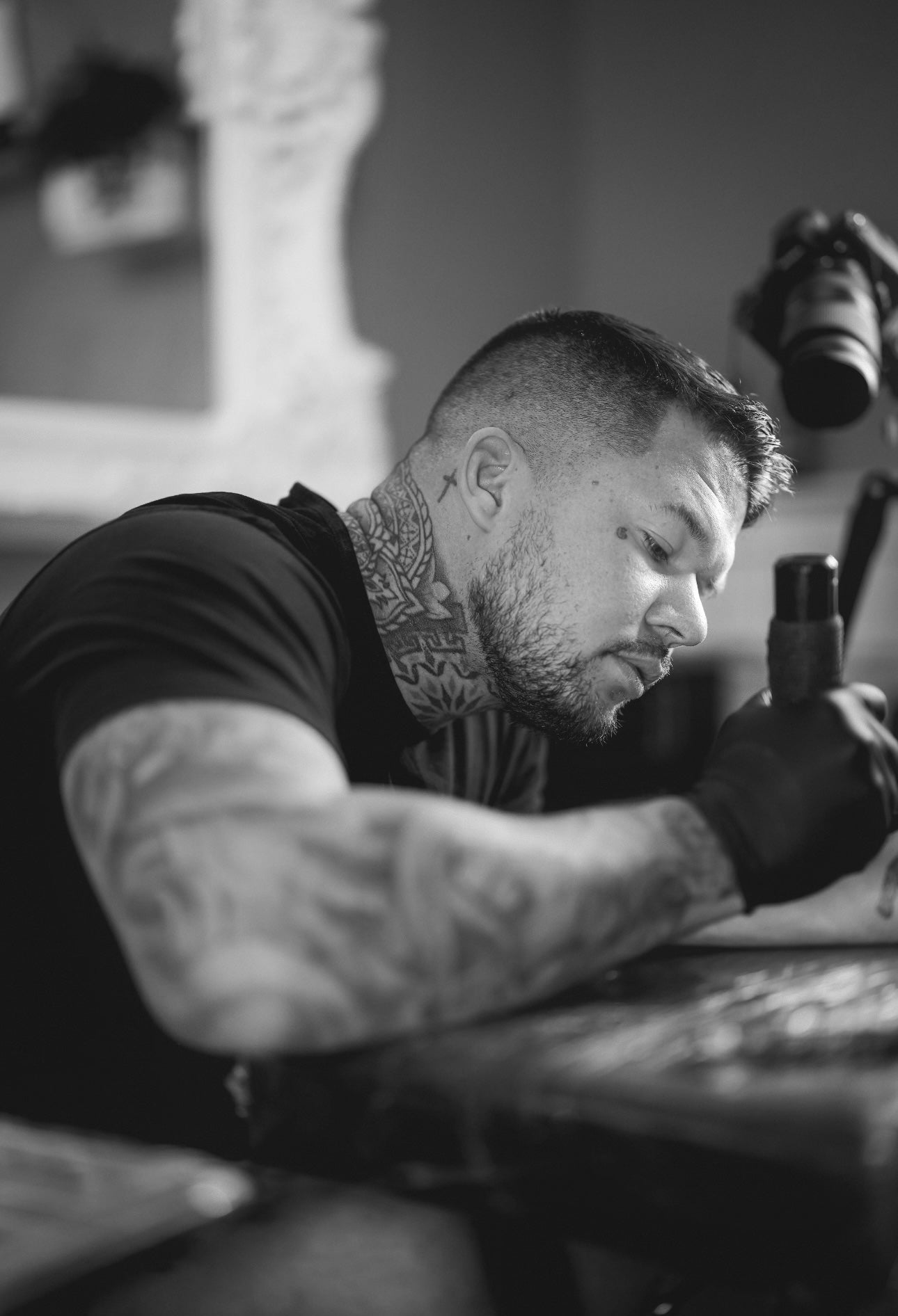 Rooted in fine art principles and elevated by two decades of hands-on expertise, his black and grey realism is defined by smooth gradients, clean structure, and a balanced use of negative space. Every tattoo is custom-designed and executed with the same commitment to excellence—regardless of scale.